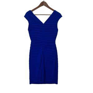 Adrianna Papell Dress Womens 4 Cobalt Blue Elegant Shutter Pleat Party Event