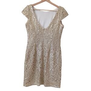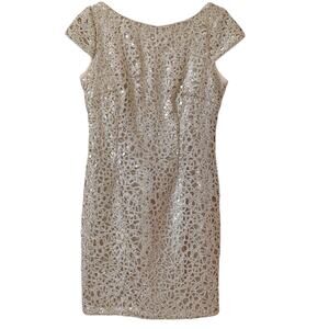 Adrianna Papell Dress Womens 6 Champagne Gold Sequin Sparkly Mini Cocktail Party