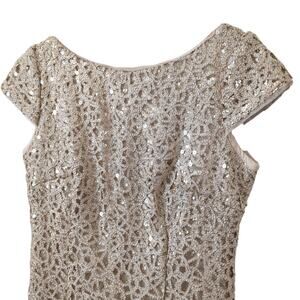 Adriana Papell women's dress size us 6 gold sequin all over low back triple lined stunning party evening cocktail event dress length 33. pit to pit 19.