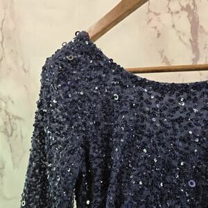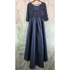 Adrianna Papell Dress Womens 8 Blue Sequin Hi Low Maxi Gown Mother Of Bride