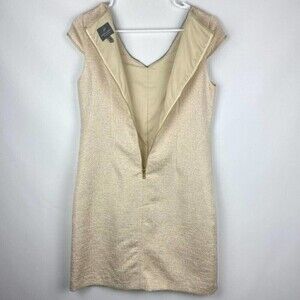 Adrianna Papell Dress Womens Size 4 Beige Short Sleeve V-neck Beaded Dress