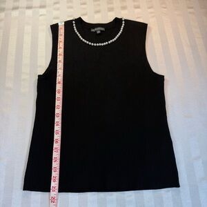 Adrianna Papell Elegant Black Sleeveless Top with Pearl Neckline Detail Sz M