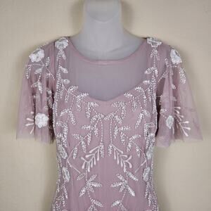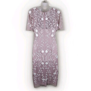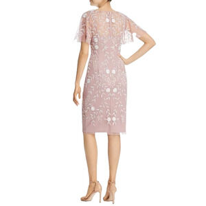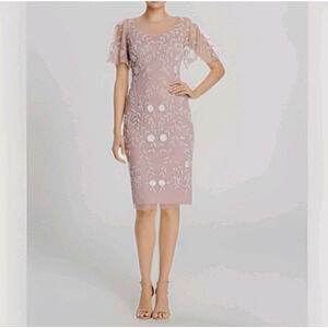Adrianna Papell Embellished Dress Flutter Sleeve Cocktail Party Beaded Pink Sz 6
