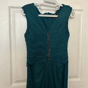 ! Adrianna Papell Embellished Pleated Bodice Mesh Gown Sz 4 Forest