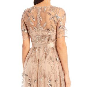 Adrianna Papell Embroidered Knit Long Ball Gown w/ Elbow Sleeves Brand NWT