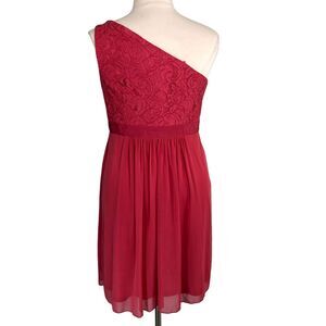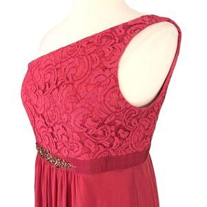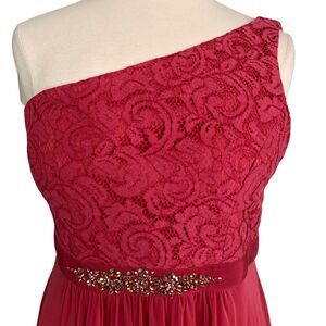 Adrianna Papell Evening Dress One Shoulder Ruched Waist Rhinestone Trim Chiffon