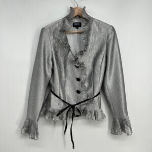 Adrianna Papell Evening Essentials Top Jacket Womens 6 Silver Metallic Crinkle