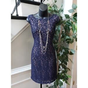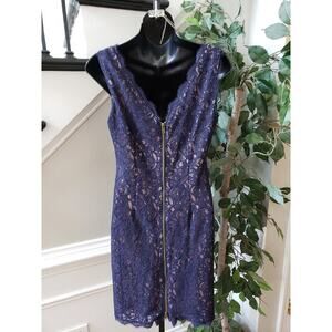 Adrianna Papell Fit & Flare Dress Women's 6 Blue Round Neck Sleeveless Back Zip