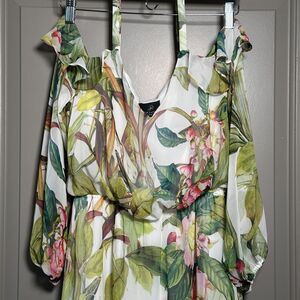 Adrianna Papell Floral Cold Shoulder Mini Dress Size 2 Spring Garden Party