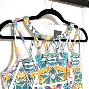 Adrianna Papell Floral Dress Bright Summer Cut Out Cage Neckline Size 8
