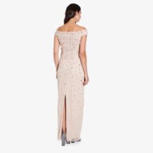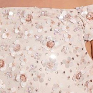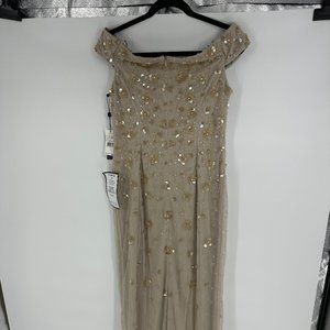 Adrianna Papell Floral Embellishment Sequin Maxi in BISCOTTI US size 8 NWT