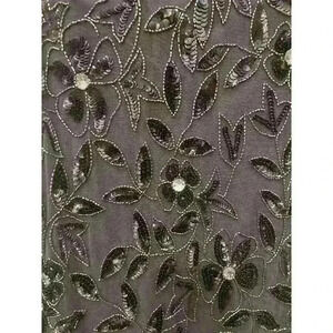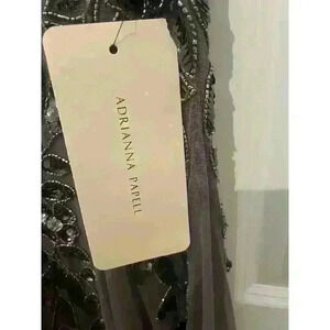Adrianna Papell Floral Embroidered Beaded Godet Gown Dress, Lead Gray, Size 2P.