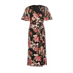 This stunning foiled midi dress from Adrianna Papell is adored in a beautiful floral design. This dress has all events covered from formal dress codes to relaxed dinner dates, featuring a v-neckline, flutter sleeves and composed in a draped mesh fabric for maximum comfort.