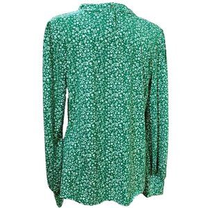 Adrianna Papell Women's Green and White Floral Printed Long Sleeve Blouse Round Ruffle Neck Size L