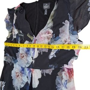 Adrianna Papell Floral Jumpsuit 14 Sheer Skirt Overlay Pink Peonies Preppy Comfy