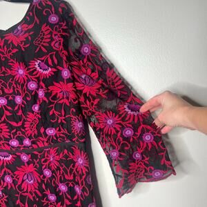 Adrianna Papell Floral Lace Embroidered Sheath Dress Sheer Sleeves Plus Size 14