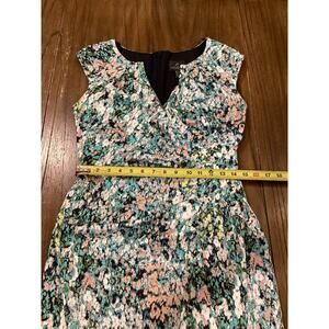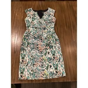 Adrianna Papell Floral Sheath mini Dress Zip Back Cap Sleeve V Neck Green 6
