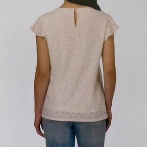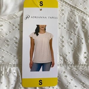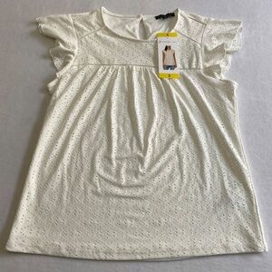 Adrianna Papell Flutter Short Sleeve Eyelet Top, Cream, Small NWT