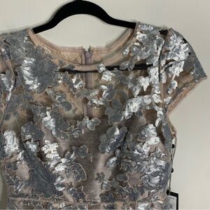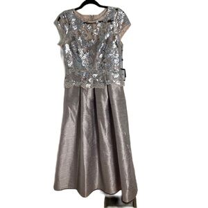 Adrianna Papell Formal Gown Dress NWT 10P Petite Pink Gray Silver Sequin Women’s