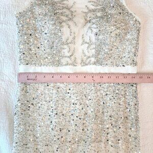 Adrianna Papell Formal White Silver Sequin Evening Gown Size 4 Beaded Illusion