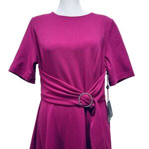 Adrianna Papell Fuchsia Belted A-Line party Dress With Rhinestone Buckle Size 12