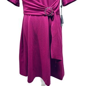 Adrianna Papell Fuchsia Belted A-Line party Dress With Rhinestone Buckle Size 12