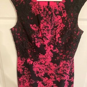 Adrianna Papell Fuchsia and Black Print Dress Size 6