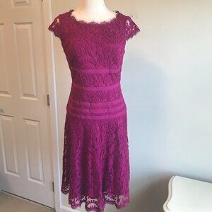 Adrianna Papell Fushia Pink Embroidered Lace Dress Fit & Flare Size US 6 EU 38