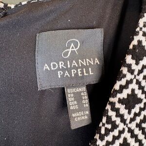 Adrianna Papell Geometric V Neck Textured Sheath Dress Black White 10