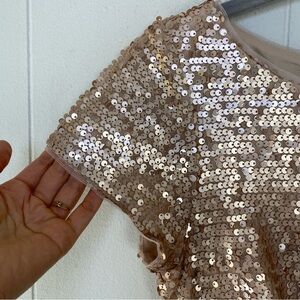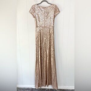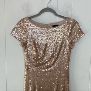 Adrianna Papell Gold Champagne Sequin Full Length Gown Size 4 Cap Sleeve Zipper