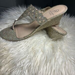 Adrianna Papell Gold Glitter Wedge Sandal. Size 10
