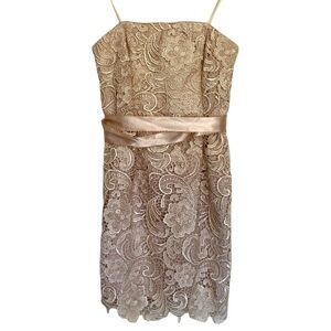 Adrianna Papell Boutique Gold Lace Overlay. Straps. Knee Length Dress Women's Size 8