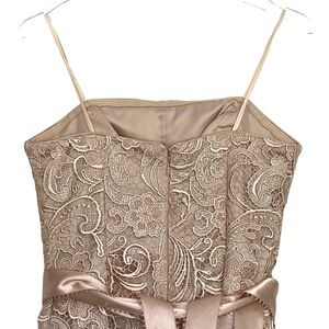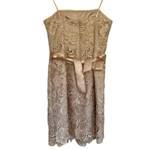 Adrianna Papell Gold Lace Overlay Knee Length Dress Women's Size 8