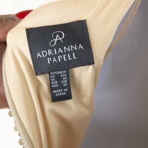 Adrianna Papell Gold Sequin Cap Sleeve Cocktail Dress 6. Adrianna Papell Sequin Sheath Dress. Simple, but elegant. Size 6, fully lined. Boat neck, gathered to the side at right waist. Hook/eye/hidden zip closure in back. Excellent used condition, no obvious flaws.