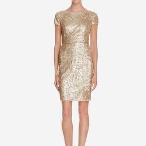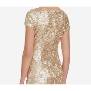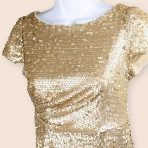 Adrianna Papell Gold Sequin Cap Sleeve Cocktail Dress 6