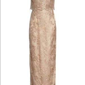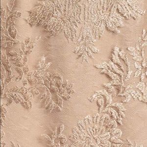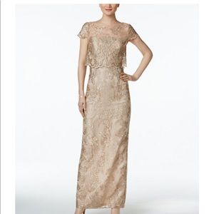 Gorgeous Gold Adrianna Papell Gown Dress - worn once, the dress was shorten 2 inches. Hidden back zip closure, illusion jewel neck. First picture is my mother wearing the dress, and she's 5'3" wearing 2 inch heels