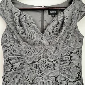 Adrianna Papell Gray Lace Sheath Dress Sz 8 Formal Cocktail Wedding Fitted