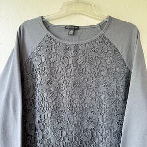 Elevate your wardrobe with this elegant Adrianna Papell gray lace sweater. Perfect for adding a touch of sophistication to any outfit. In excellent condition, ready for a new home.