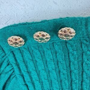 Adrianna Papell Green Cable Knit Lightweight Crew Neck Sweater Button Detail M