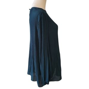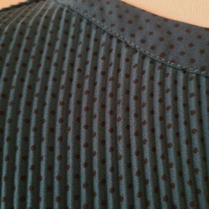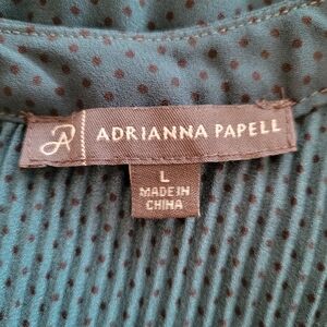 Adrianna Papell Green Pleated Polka Dot Chiffon Blouse Size Large