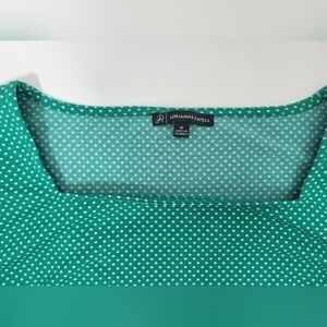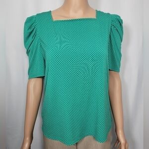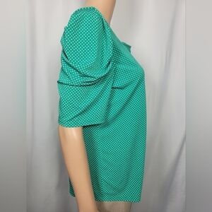 Adrianna Papell green with white polka dot shirt with gathered sleeves in a size medium