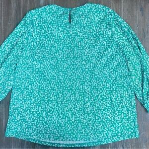 Adrianna Papell Green with White Flowers Long Sleeve Boxy Blouse Size Medium