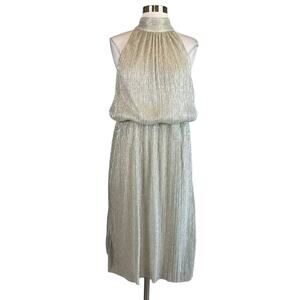 Adrianna Papell Halter Cocktail Dress Size 8 Gold Metallic Sleeveless A-Line