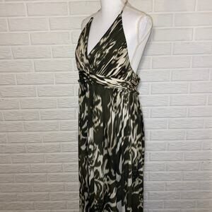 Adrianna Papell Halter Maxi Dress Printed Abstract Babydoll Green Womens 12