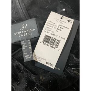 Adrianna Papell Halter Velvet Tulle Black Dress Plus Sz. 16 NWT Embroidered Chic