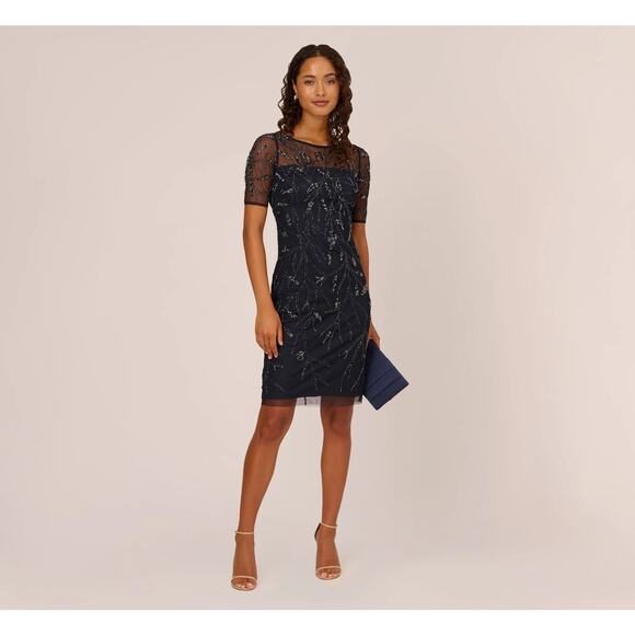 Adrianna Papell Hand-Beaded Cocktail Dress In Midnight Size 0
