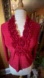 Adrianna Papell Holiday Red Ruffled Rose like appliqué Blouse 3/4 sleeves Small