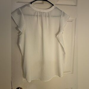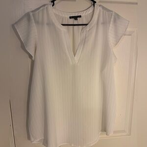 Beautiful & lightweight pullover tunic blouse by Adrianna Papell. Ivory with thin metallic gold striped.
