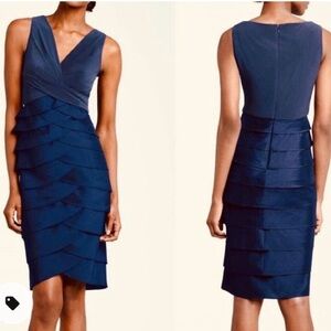 Adrianna Papell Jersey & Charmeuse Shutter Pleat Dress Sz 6 Royal Blue