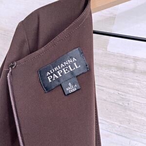 Adrianna Papell Jersey Wrap Dress Brown 3/4 Sleeve V Neck Stretch Womens 6